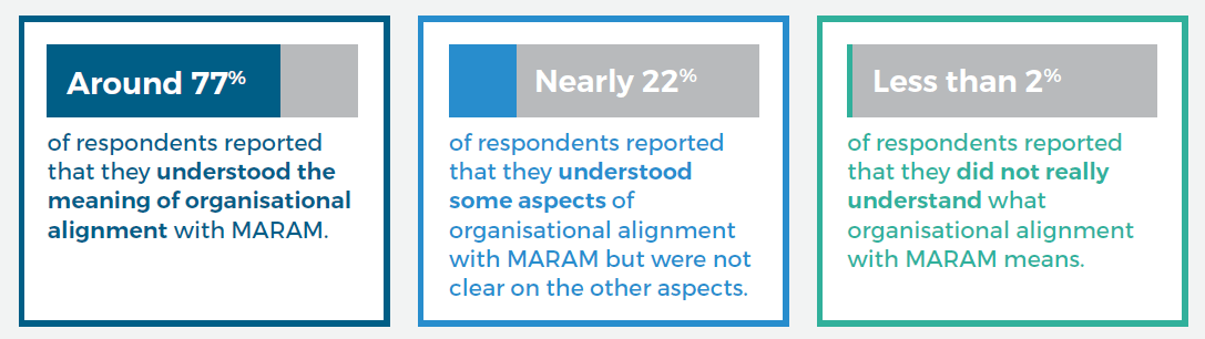 Although it was pleasing to see a high proportion of respondents reflecting their understanding of MARAM alignment, we consider there is still a significant number of respondents who do not fully understand what alignment requires. We also note that as this survey involved self-reporting by organisations, the results do not necessarily show a consistent understanding of what alignment requires across the sector. As noted, we heard that some organisations have different views on whether an organisation is, or is not, aligned with MARAM.
