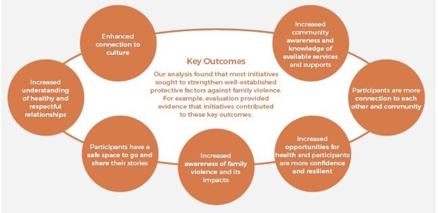 - increasing opportunities to celebrate success and achievements in Aboriginal prevention of family violence through strengths-based approaches that facilitate continuous improvement and learning.